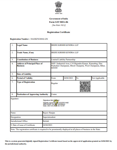 Srijee Krishi Kendra Llp’s LLP Identification Number is (LLPIN) AAW3610. Its Email address is rahulrajkrishikendra@gmail.com and its registered address is C/O Rajendra Kumar, NSP – 1, Industrial Area, Kumarbag, Dist West Champaran, Block Chanpatia Bihar 845450.. Its MSME Registration number is UDYAM- BR-38-0003027.