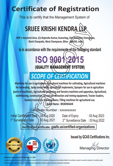 Srijee Krishi Kendra Llp to be among the top Agriculture Equipments Assembling & Fibricating Firm in Champaran. We shall achieve this goal by being the preferred solution provider to the needs of our customers/Farmers by practicing respectful and ethical business practices; by being the employer of choice within the engineering industry.